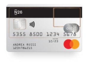 N26 è la carta virtuale di debito con IBAN rilasciata dall’omonima banca online, attiva dal 2015 in Germania. Circuito MasterCard, accettata ovunque, non prevede costi di attivazione, né canone annuo né costi di emissione. È associata all’apertura del conto corrente gratuito, 100% mobile. L’emissione della carta fisica prevede invece un costo di 10 euro.