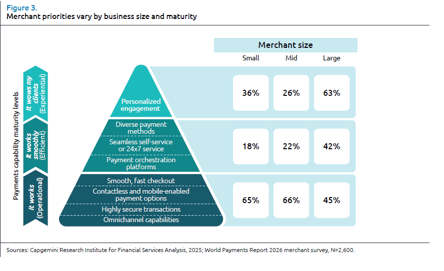 I commercianti sono i protagonisti di questa trasformazione, e le loro aspettative sono in rapida evoluzione. Il rapporto Capgemini ha rivelato che le priorità variano significativamente in base alle dimensioni del commerciante: