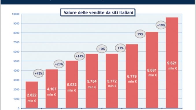 L’Osservatorio B2c della School of Management del Politecnico di Milano rileva una crescita del 19% del valore delle vendite online, a fronte del 2% in meno dei consumi totali. L’e-commerce vale 9,6 miliardi di euro con il numero dei compratori online che cresce di tre milioni di unità passando da 9 a 12 milioni.