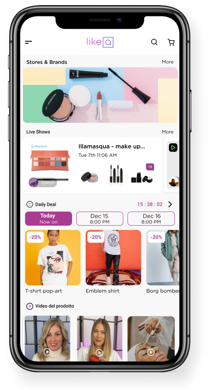 LikeQ è un’app mobile-first che contiene video originali creati da influencer. Permette di fare shopping attraverso la app, ma comprende anche un’ampia gamma di strumenti che puntano ad aumentare l’engagement della clientela.