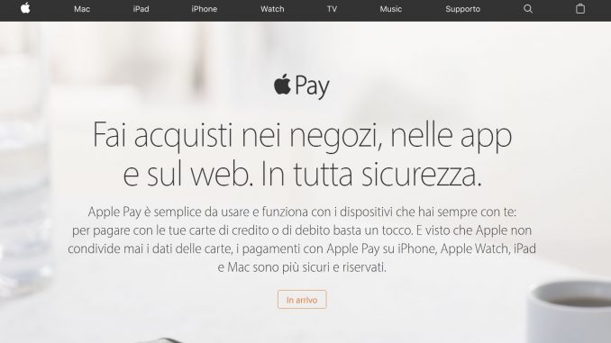 La conferma arriva indirettamente dalla stessa Apple che ha modificato la pagina italiana di presentazione e descrizione del servizio per i pagamenti digitali aggiungendo la dicitura “in arrivo”, che dunque lascia supporre un prossimo lancio del suo sistema di pagamento mobile anche nel nostro Paese.