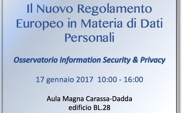 Per affrontare preparati la nuova normativa europea sulla protezione dei dati personali che entrerà in vigore nel maggio 2018 l’Osservatorio Information Security & Privacy ha promosso il convegno: Il Nuovo regolamento europeo in materia di trattamento dati personali: gli elementi di maggiore rilevanza, organizzato in collaborazione con Clusit, Cefriel, Deib ed Europrivacy.