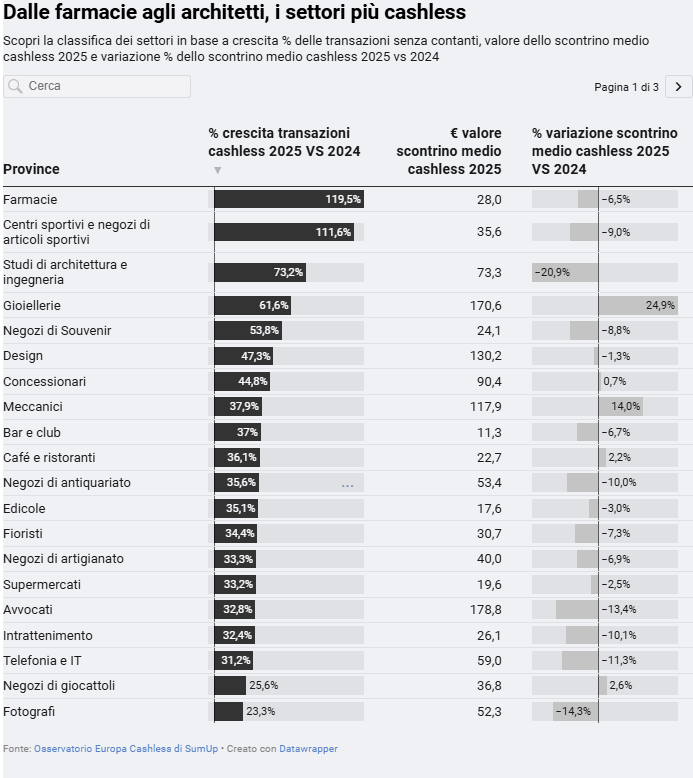 Il 2025 conferma la traiettoria positiva del cashless in Italia. La crescita interessa tutte le province, dalle più piccole alle metropoli, e un’ampia gamma di settori merceologici, dai servizi professionali alla ristorazione, passando per farmacie, sport e retail.